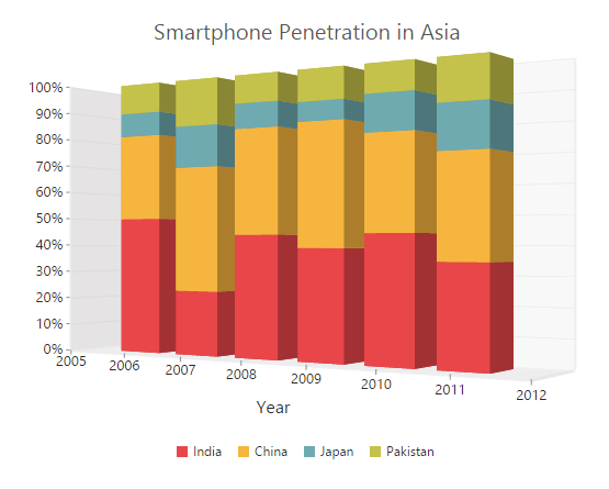 The stacked bar 3d chart plots datasets horizontally grouped next to each other, instead of being stacked vertically one below the other... The stacked bar chart is represented by the stackedbar3dseriesview object, which belongs to bar series views.this view displays all points from different series, but with the same argument, stacked in a single bar (for instance, this is useful to show that each bar represents a particular category). Bar chart with 4 data series. The stacked bar 3d chart plots datasets horizontally grouped next to each other, instead of being stacked vertically one below the other. 2d and 3d stacked bar. The length of each stack in a bar is proportionate to its value. This chart helps in displaying the cumulative magnitude of two or more datasets. Datasets in a stack are distinguished by.. The stacked bar chart is represented by the stackedbar3dseriesview object, which belongs to bar series views.this view displays all points from different series, but with the same argument, stacked in a single bar (for instance, this is useful to show that each bar represents a particular category).